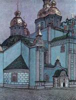 | Михайловский монастырь. Почтовая открытка | Собор Киево-Михайловского Златоверхого монастыря. Худ. Г. Лукомский |