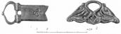 Однако, известно, что даже самые опытные хищники-кладоискатели, занимавшиеся с весьма давних пор ограблением богатых курганов, никогда не могут выбрать из погребения весь инвентарь полностью. Так было и при ограблении интересующей нас камеры. В заполнении нижней части сруба, ниже уровня подошвы фундаментов церкви, были найдены обломки толстых глиняных черепков с обильной примесью кварца, несколько аморфных в результате коррозии железных предметов, в частности гвоздей, а также два бронзовых [с. 173] предмета, представляющих особый интерес для выяснения вопроса о назначении сооружения.