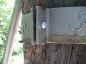 Монтаж конструктивних елементів здійснювався за допомогою вузлів кріплення. Краї муфт кріпилися болтами (Фото 29). Завдяки різній кривизні стовбура муфти не обтискали стовбур механічно впритул. Монтаж широкої муфти до стовбура здійснювався за допомогою гвинтів (Фото 34), вкручених по окружності в два ряди один над другим вздовж по лінії волокна без зміщення. Відстань між верхнім та нижнім рядами гвинтів по вертикалі не перебільшувала 30 см. Шаг вкручування дорівнював 5-6 см.