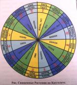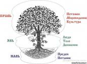 У слов’янському фольклорі дерево, що символічно вважалося світовим, співвідносилося з трьома світами: Нав’ю, Прав’ю та Яв’ю (Мал. 5). у календарному колі – коловороті, кожний місяць року відповідав певному роду дерева (Мал. 6 ). В сімейному обряді дерево символізувало рід.