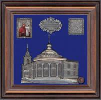 Сувенирная плакетка «Киевский Свято-Введенский монастырь». Медь. Серебрение. Гальванопластика. Скульптор А. Жернов. Граверные работы — В. Жернов. 250*250мм (без обрамления). |