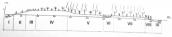 Рис. 1.6.140. Фітоценотичний профіль північно-західної частини о. Труханів. Умовні позначення: I – асоціація рдесника пронизанолистого, II – куничника наземного, III – спориша, IV – тонконогу вузьколистого – клену американського, V – клену американського – тополі чорної, VI – осоки гострої, VII – тополі чорної з розрив-травою дрібноквітковою у підліску, VIII – аморфи чагарникової, IX – глечиків жовтих (Рис. А. Цуканової)
