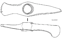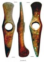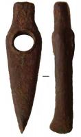 Нещодавно виявлений виріб з Дубнівського району Рівненської области має загальну довжину 22,9 см, ширину горизонтального леза – 5 см; ширину вертикального леза – 4,8 см; діяметр втулки для руків’я – 3,3 см (рис. 3).