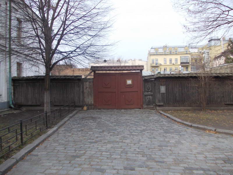 Східна брама і огорожа садиби аптеки поч. ХІХ ст. на вул. Притисько-Микільська. Фото Івана Парнікози, 2014 р. |
